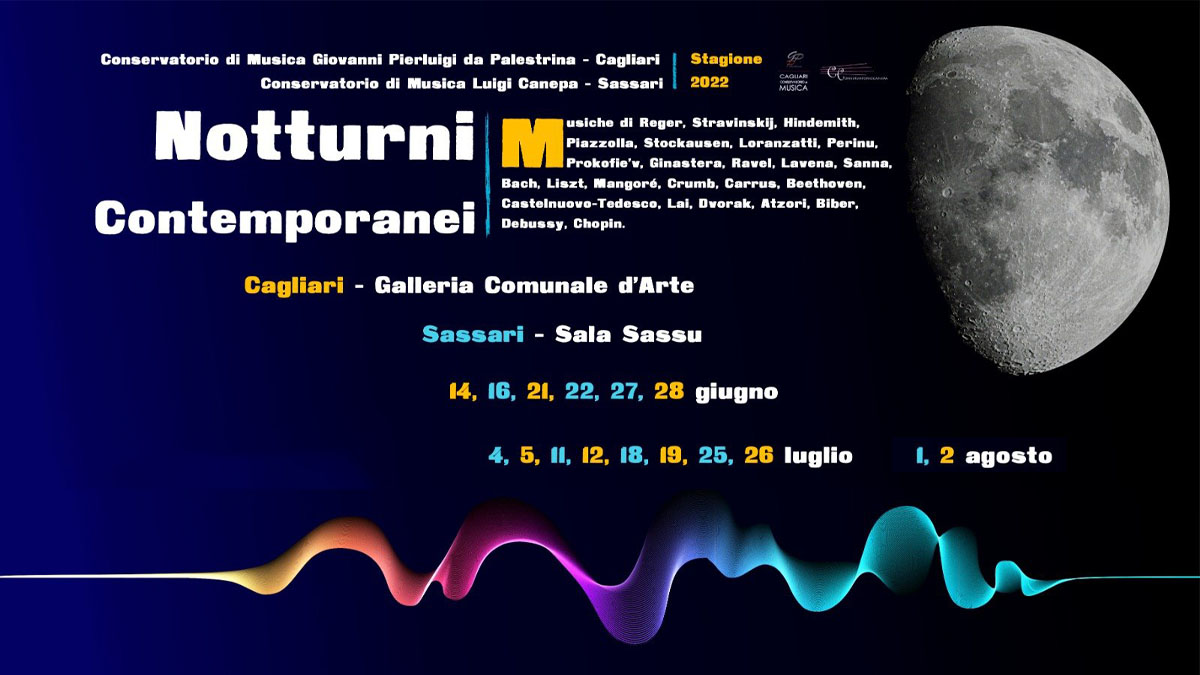 Col concerto in programma domani, martedì 14 giugno, alle 21:30 ai Giardini Pubblici di Cagliari, nell’esedra antistante la Galleria comunale d’Arte, prende il via l’edizione 2022 di“Notturni Contemporanei”, rassegna musicale firmata dal Conservatorio di Musica “G.P. da Palestrina” di Cagliari in collaborazione col Conservatorio di Musica “Luigi Canepa” di Sassari, col patrocinio del Comune di Cagliari.