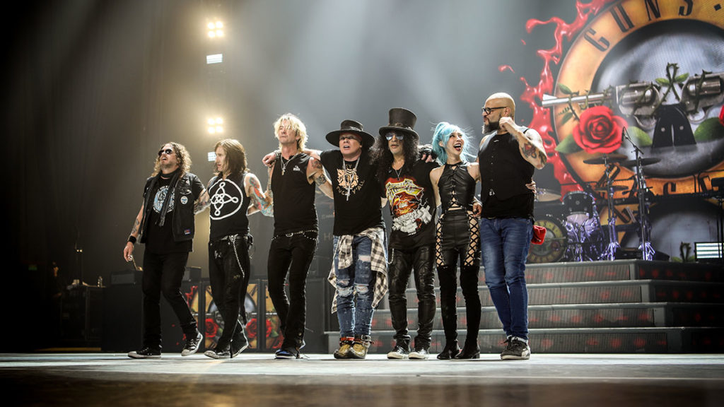 Rimangono una delle band più importanti e influenti della storia della musica e continuano ad essere un punto di riferimento per milioni di fan in tutto il mondo. Il gruppo è formato da: Axl Rose (voce, piano), Duff McKagan (basso), Slash (chitarra solista), Dizzy Reed (tastiere), Richard Fortus (chitarra ritmica), Frank Ferrer (batteria) e Melissa Reese (tastiera).