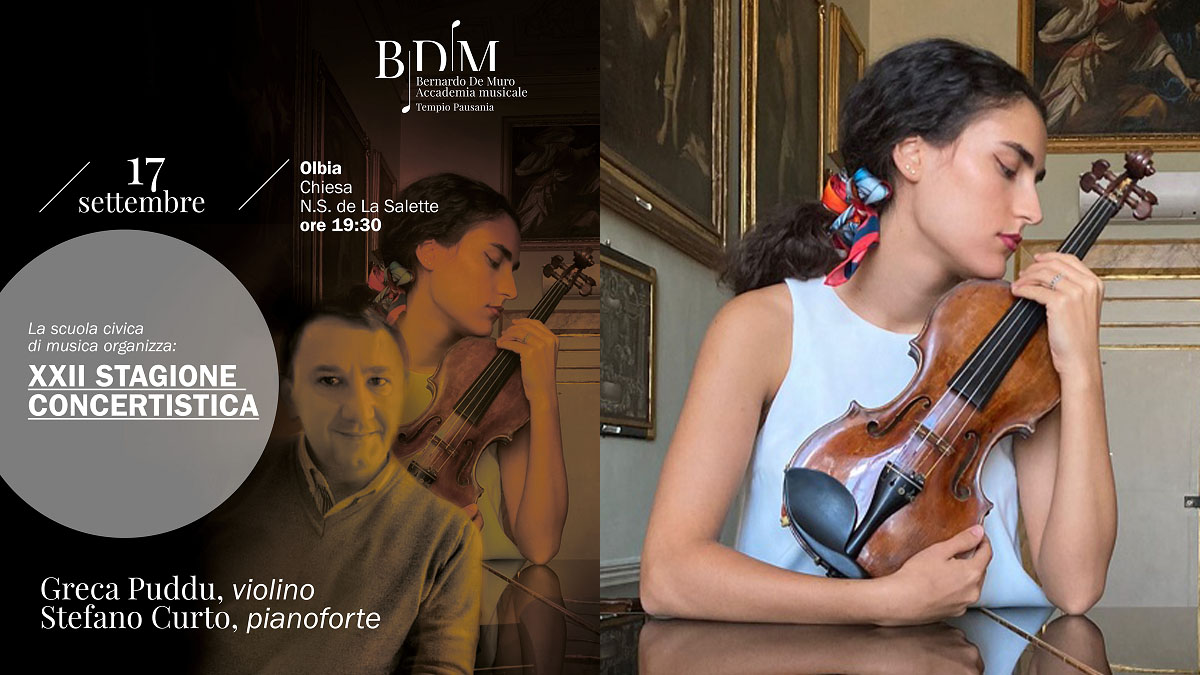 Un affascinante viaggio tra Ottocento e Novecento con il concerto del Duo Violino e Pianoforte che schiera la giovane violinista Greca Puddu, allieva di Mircea Tifu, perfezionatasi con Salvatore Accardo e Pavel Berman e il pianista Stefano Curto, raffinato e versatile interprete dello strumento a tastiera, in programma venerdì 17 settembre alle 19:30 nella chiesa di Nostra Signora di La Salette a Olbia per l’apertura delle celebrazioni della festa di Nostra Signora de La Salette a Olbia: un evento promosso dalla Scuola Civica di Musica di Olbia nell’ambito della XXII Stagione Concertistica in collaborazione con l’Accademia Musicale Bernardo De Muro e realizzato con il patrocinio e il sostegno del Comune di Olbia e della Regione Sardegna, in collaborazione con l’UniTre di Olbia, e fortemente voluto dall’assessora alla cultura Sabrina Serra.