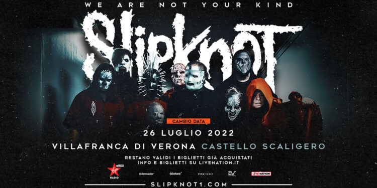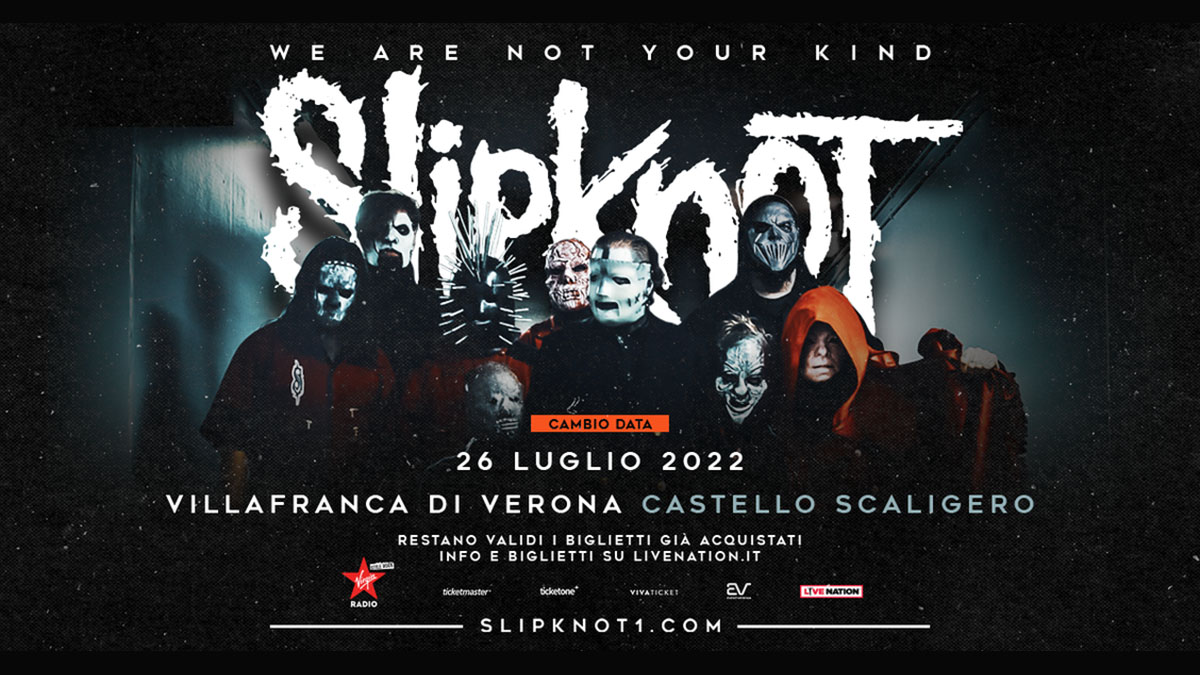 Live Nation Italia comunica che la data degli Slipknot originariamente prevista il 27 luglio 2021 sarà riprogrammata il 26 luglio 2022 sempre al Castello Scaligero di Villafranca di Verona.
