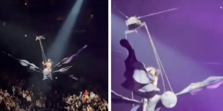 Secondo quanto riportato dai presenti, i cavi che sorreggevano l’enorme animale avrebbero ceduto temporaneamente, facendo perdere l’equilibrio alla cantante statunitense. Le immagini sono rapidamente diventate virali sui social e mostrano il momento in cui Katy Perry ha interrotto l’esibizione per qualche secondo, visibilmente spaventata, prima di accertarsi che fosse tutto sotto controllo.