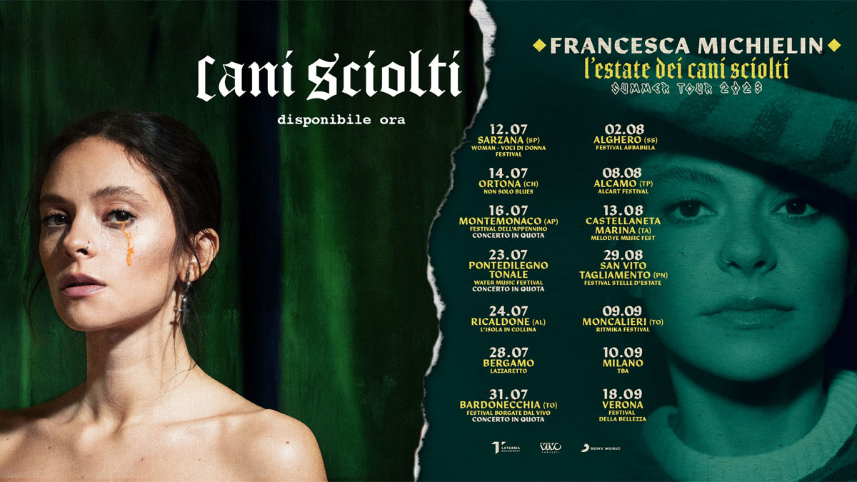 Il tour “L’estate dei Cani Sciolti” (produzione Vivo Concerti) porterà Francesca Michielin su alcuni dei più importanti e magici palcoscenici d’Italia, con i brani di “Cani Sciolti” e i grandi successi che l’hanno resa una delle artiste più apprezzate della scena contemporanea italiana. Da venerdì 28 aprile sarà anche in radio e su tutte le piattaforme digitali con il nuovo singolo di gIANMARIA “Disco Dance” feat. Francesca Michielin.