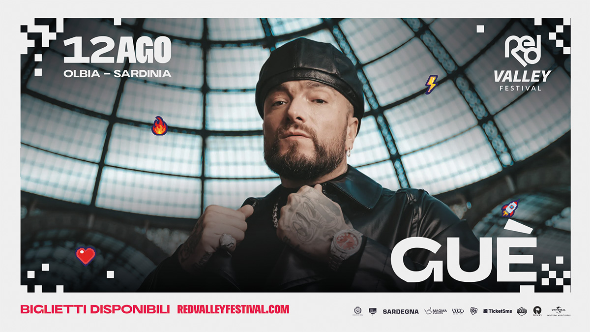 La kermesse musicale, ormai tra le più importanti di Italia nel suo genere e che la scorsa estate ha ottenuto un grande successo con oltre 70.000 presenze da tutta la penisola, è pronta ad ospitare uno dei rapper più influenti in Italia, fresco del successo del suo nuovo album “Madreperla”: Guè sarà l’altro grande protagonista della prima serata del Red Valley Festival, in programma sabato 12 agosto 2023 presso l’area concerti dell’Olbia Arena (Olbia, SS).