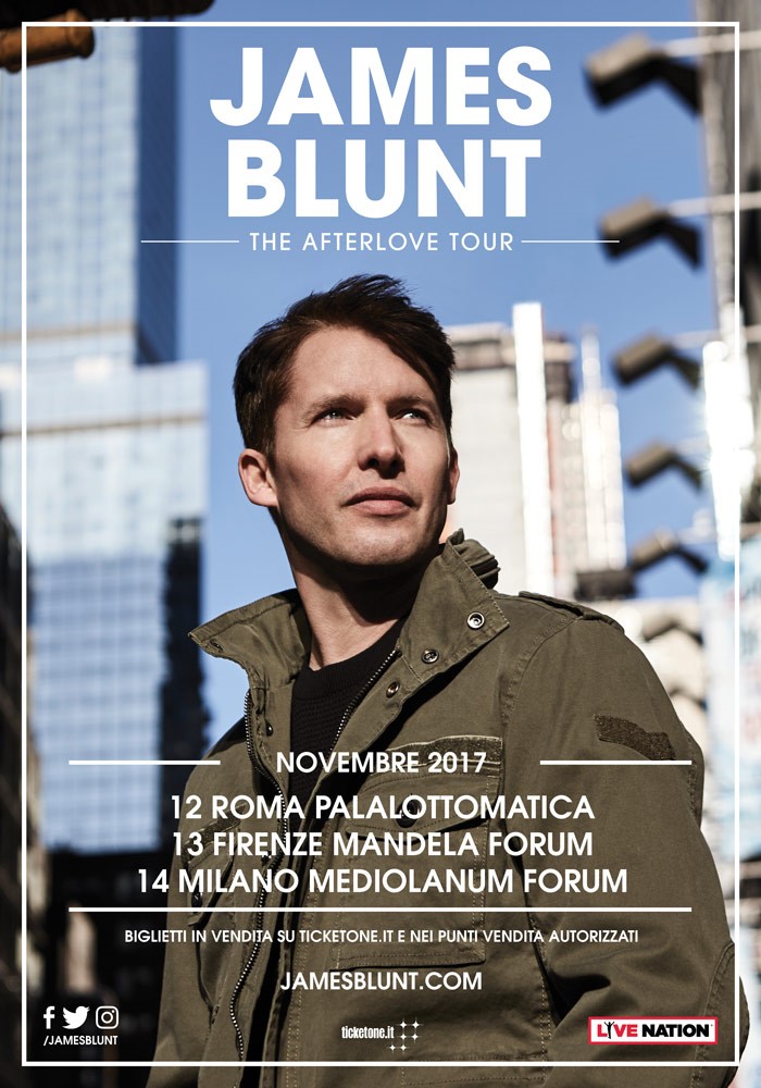 Il prossimo ottobre James Blunt intraprenderà un tour mondiale – The Afterlove Tour. Il tour precedente, Moon Landing Tour, ha visto l’artista inglese esibirsi in 140 concerti nel corso di dodici mesi.
