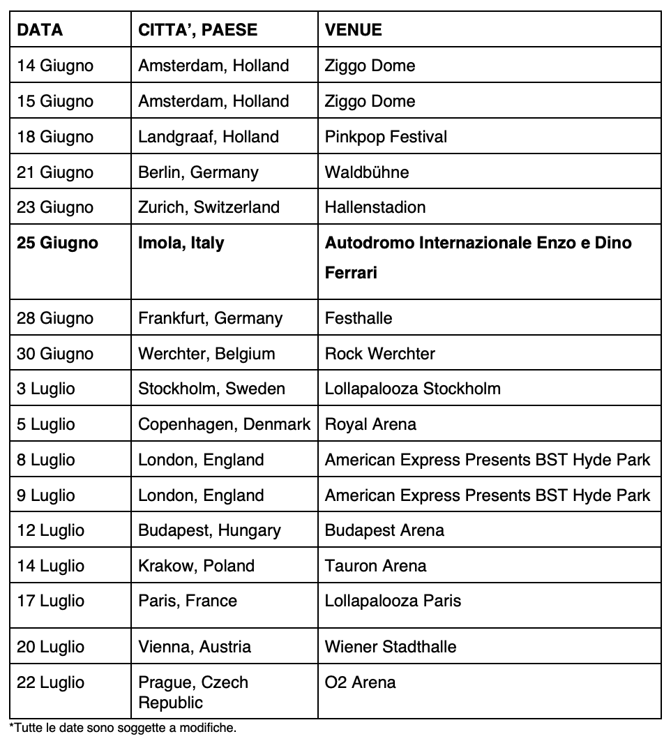 Resta aperta la vendita dei biglietti per le nuove date (link).