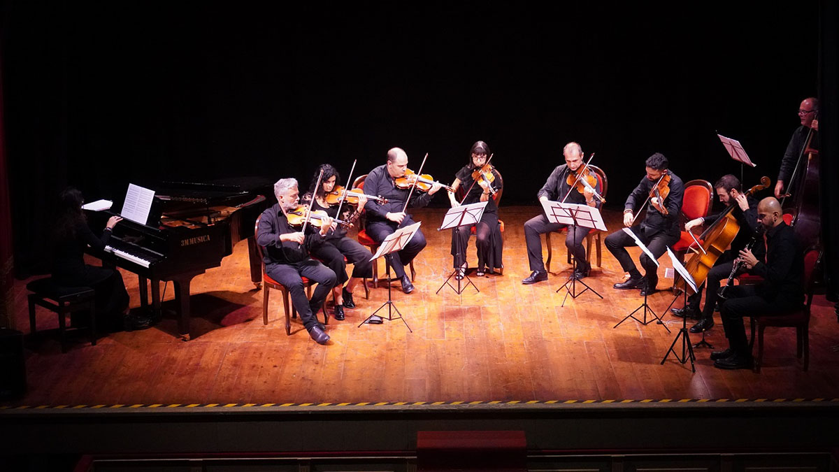 Alghero. Pianoforte, orchestra e voci corali si fondono insieme ed emozionano al cospetto di un pubblico entusiasta. Impossibile non pensare a immagini di film, a pellicole per le quali queste note sono state create da un grande intellettuale sardo scomparso nel 1971, all’età di cinquantacinque anni.