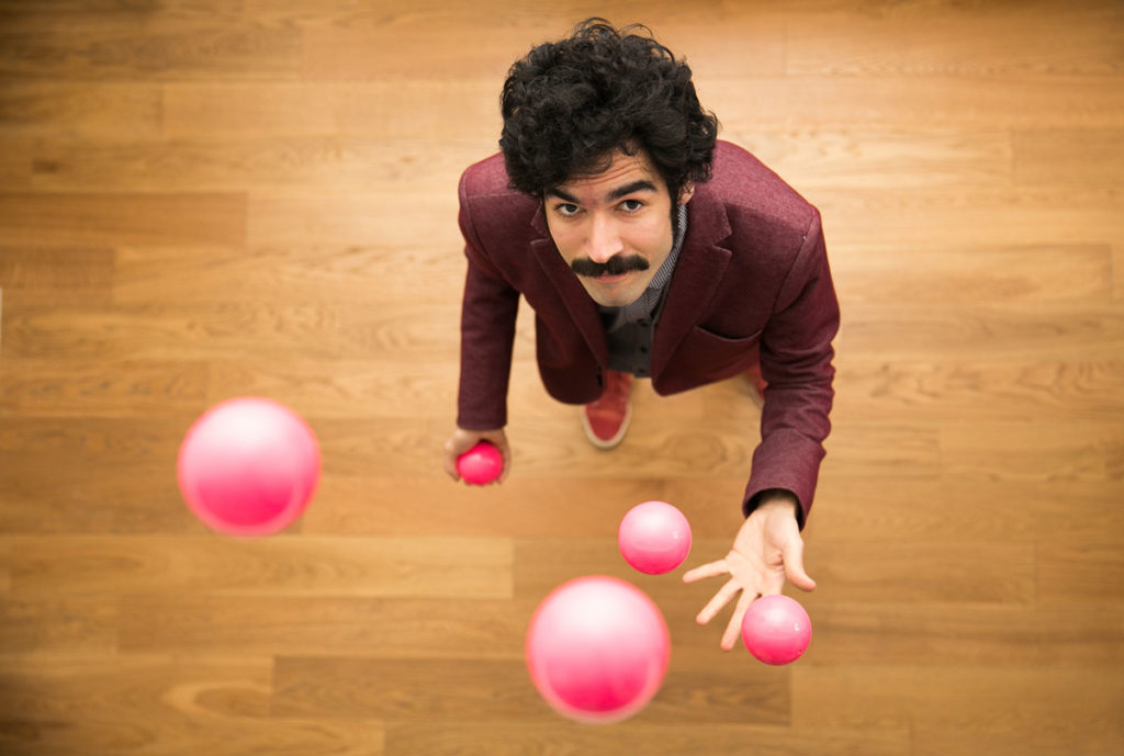 Nicola ci sorride: è un ragazzone longilineo, dall’aspetto bonario, con occhi intensi e vivaci, la sua storia inizia a 16 anni quando uno zio, per caso, gli mostra in modo un po’ maldestro un trucchetto da giocoliere con tre palline fatte di carta stagnola. Colpo di fulmine. Inizia tutto in questa maniera, un po’ come iniziano i sogni… senza un perché.