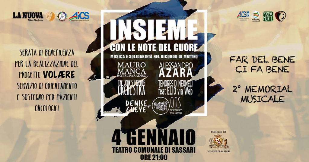 L’ingresso allo spettacolo di sabato è a offerta, per i biglietti bisogna rivolgersi alla sede dell’Associazione “Insieme con le note del cuore” in viale Porto Torres, 27 a Sassari oppure chiamare il numero 392 5826123.
