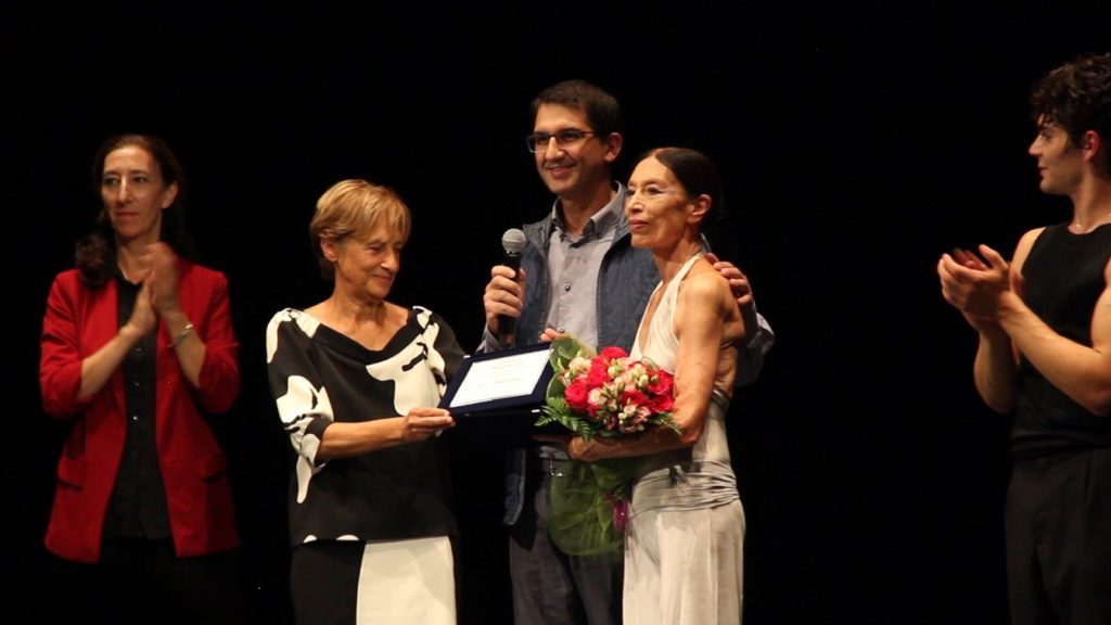 Il prestigioso riconoscimento, assegnato dal “Festival della Danza d’autore – Corpi in movimento”, è stato consegnato sul palcoscenico del Teatro Verdi, tra applausi scroscianti, dalle mani di Angela Mameli in rappresentanza della Fondazione di Sardegna (uno degli enti sostenitori della kermesse assieme a Mibact, Ras, Comune di Sennori e Comune di Sassari).