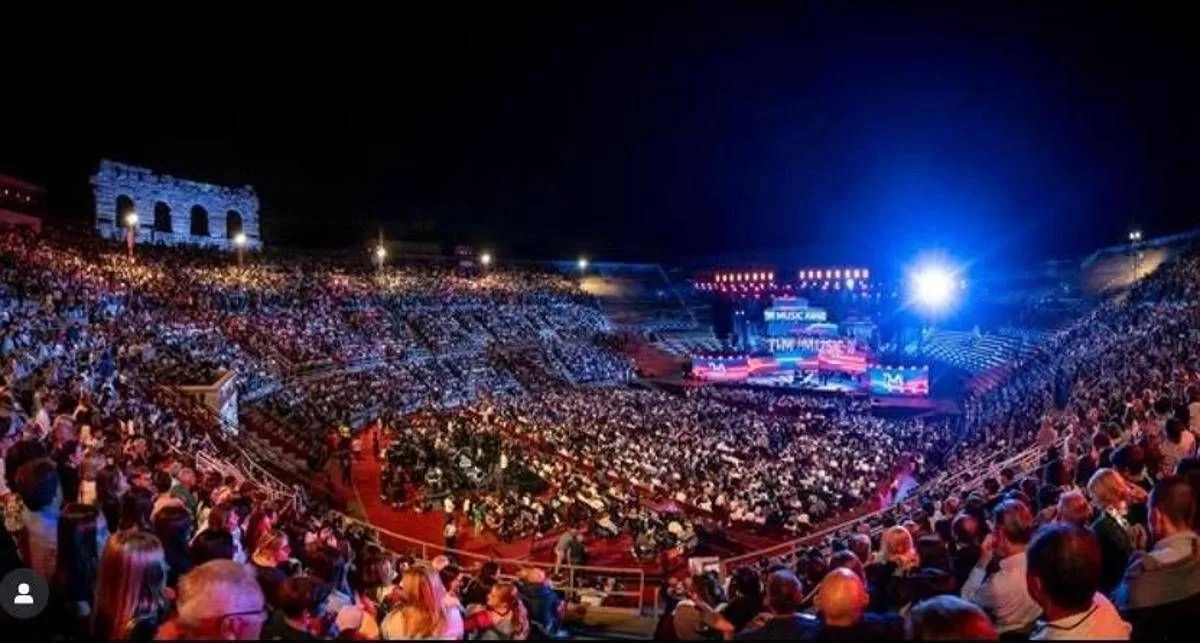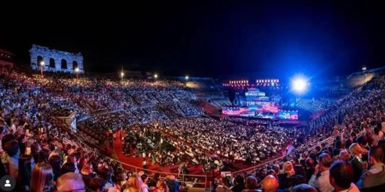 Poi Conti ha coinvolto il pubblico dell’Arena di Verona in un messaggio luminoso contro la guerra: “Può essere l’occasione per tutti voi stasera di accendere i vostri telefonini, che siano un cenno di pace, perché tutti i paesi del mondo possano vedere serate come queste, di musica, di gioia, di serenità, ma soprattutto di pace”, ha detto il conduttore dando il via ad un gesto simbolico che ha reso la serata non solo un tributo alla musica, ma anche un messaggio di speranza e di pace.