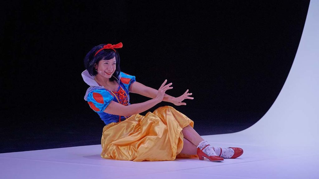 In risposta a questo fenomeno, due performer filippini si appropriano della principessa bianca, il modello archetipico che domina l’immaginario narrativo dei bambini escludendo al contempo il loro contesto, i corpi e le storie. Il duo distilla meticolosamente e ricostruisce il linguaggio del corpo di questa ideale principessa fantasy e programma i suoi movimenti e il suo linguaggio nel proprio corpo mascherato. Le narrazioni programmate del sistema vengono riscritte dagli artisti utilizzando strategie mimiche e imitative e corrompendo questo mondo chiuso con i loro corpi estranei. Questa performance riconfigura l’intricato corpo – segno – espressione e lingua dell’industria del Fantasy per indebolire le mercificate e precostituite rappresentazioni della felicità.