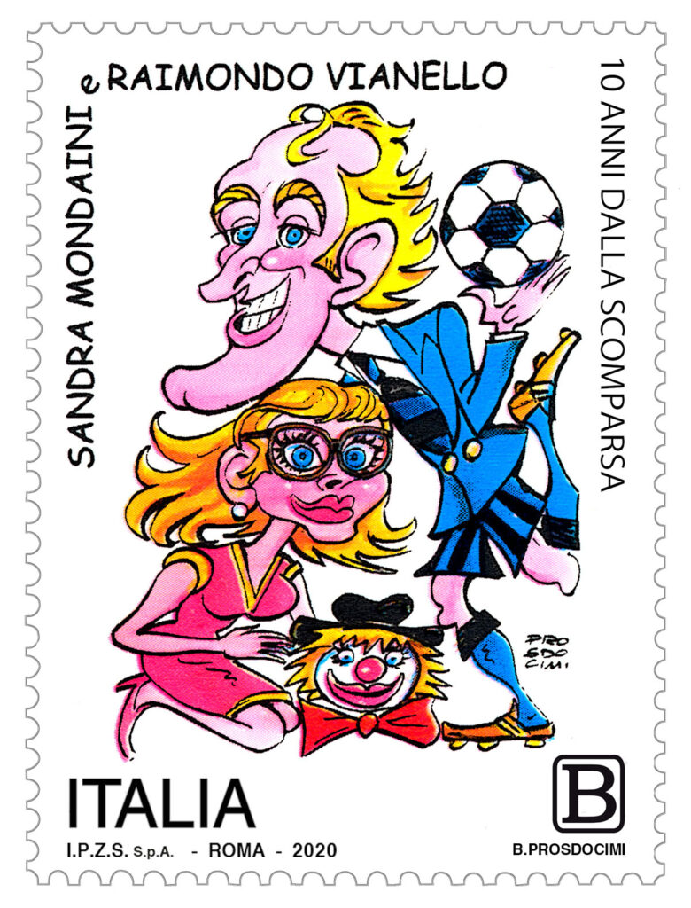 Emesso ieri dal Ministero dello Sviluppo Economico un francobollo ordinario appartenente alla serie tematica “le Eccellenze italiane dello spettacolo” dedicato a Sandra Mondaini e Raimondo Vianello, nel 10° anniversario della scomparsa, relativo al valore della tariffa B pari a €1,10.