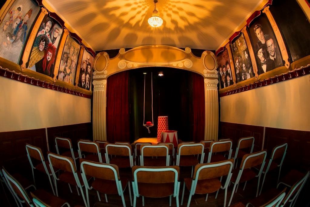 Lo Teatrì è fiorito il 7 aprile 2018; ad adornare le pareti il rispetto che gli artisti sostenitori del progetto nutrono per i volti sacri della storia del Teatro, dalle maschere della Commedia dell’Arte fino agli immensi fratelli De Filippo, tutti accomodati in loggioni dipinti all’Italiana; il boccascena ci riporta invece indietro al Teatro greco, e incornicia il piccolo palco invitando lo sguardo verso un poietico buio abissale.