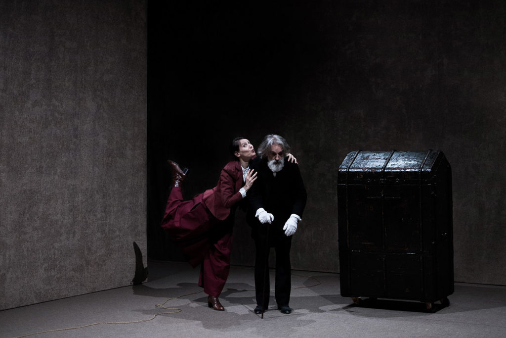 Un emozionante racconto per quadri, con una sintassi rigorosa e uno sguardo quasi cinematografico, tra dissolvenze incrociate e fermo-immagine, per una narrazione non lineare: «l’opera è cosparsa di piccoli impedimenti e fraintendimenti, anche linguistici, rotture sintattiche, pianti, canti, apnee, russamenti, borbottii e filastrocche, e poi i suoni» – ricorda Alessandro Serra -. «Tutto concorre a una partitura musicale che, scrive Mejerchol’d, è come una sinfonia di Čajkovskij».
