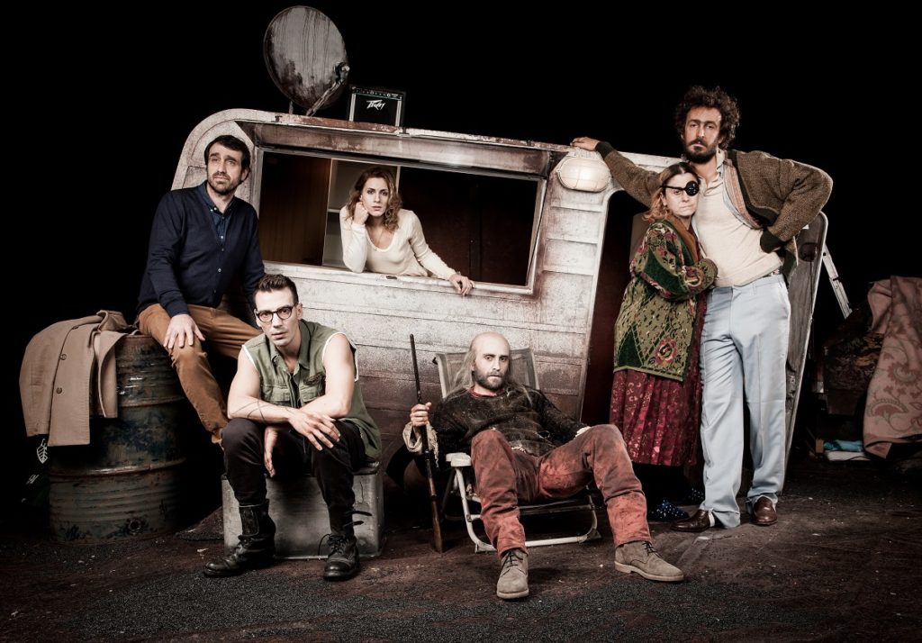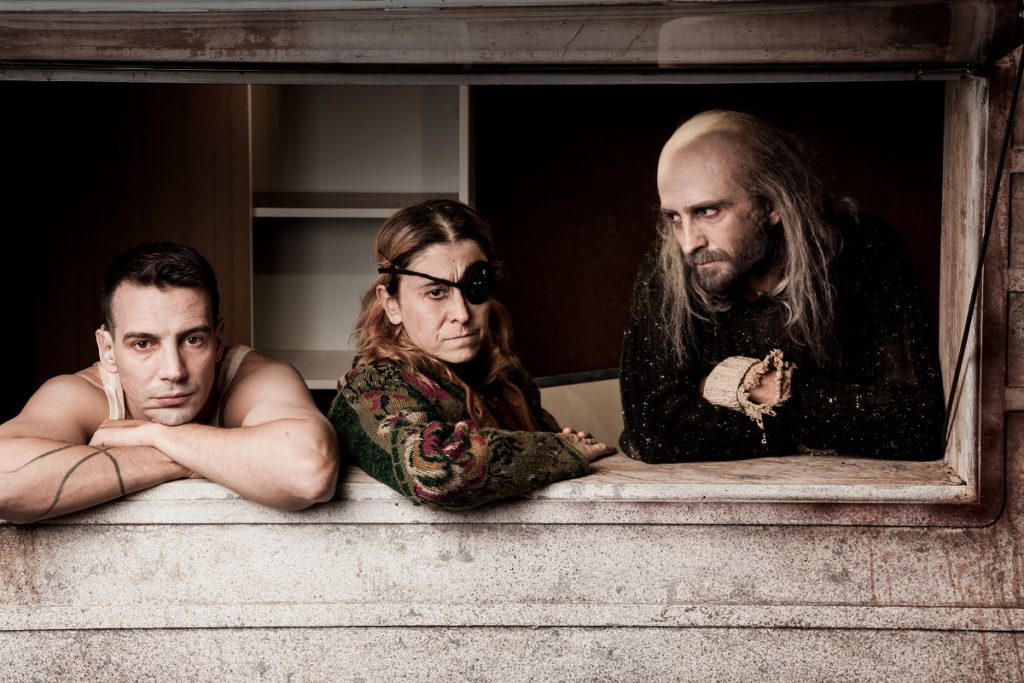 Viaggio agli inferi – in un immaginario futuro prossimo, disegnato dalle scenografie di Maria Spazzi che evocano i paesaggi desolati e lunari delle periferie delle città, come terre di nessuno dove trovano rifugio coloro che non hanno più nulla da perdere o non sanno dove andare – e riflesso nei fantasiosi costumi di Erika Carretta, in carattere con i temperamenti e i “mestieri”, forse perfino con l’umore e i pensieri dei personaggi, imprigionati in un’epoca terribile e costretti ad indossare loro malgrado una metaforica corazza per resistere ai colpi inferti dal destino.