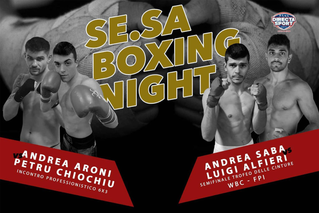 Sabato 22 febbraio con inizio alle ore 19:00 presso il palasport Alberto Mura si terrà la prima edizione del SE.SA. Boxing Night. Sul ring, nei due match clou, quattro professionisti di alto livello: Andrea Aroni dell’accademia Boxe Mario Muretti che incrocerà i guantoni con Petru Chinochiu della Società Boxe Cavarzere di Monselice per i pesi supermedi 76 kg. Mentre per i pesi Welter, 66 kg, saliranno sul ring Andrea Saba della Palaistikè Cagliari contro Luigi Alfieri per la San Salvo Boxe che combatteranno in un interessantissimo incontro valevole come semifinale del Trofeo delle cinture WBC – Fpi.