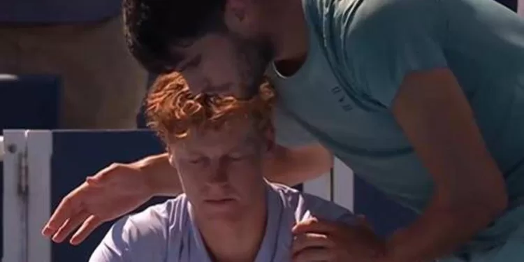 (Adnkronos) – Lezione di sportività di Carlos Alcaraz. Dopo il ritiro di Jannik Sinner dalla finale del Masters 1000 di Cincinnati di oggi lunedì 18 agosto, il tennista spagnolo è subito andato a sincerarsi delle condizioni del numero uno al mondo, cercando di rincuorarlo con un abbraccio. A decisione confermata, Alcaraz ha poi scritto sulla telecamera un messaggio affettuoso per il rivale, tra gli applausi del pubblico: “Mi dispiace Jannik”.