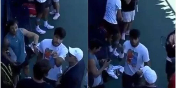 Il torneo sta, come sempre, mostrando infatti live sul proprio canale YouTube e sui profili social ufficiali, l’avvicinamento dei tennisti e i loro allenamenti, inquadrandoli anche fuori dal campo. Alcaraz è stato quindi ripreso dalle telecamere durante un fitto colloquio con il suo staff, che gli stava dando indicazioni su cosa migliorare e sulle zone di campo su cui concentrare i suoi colpi.