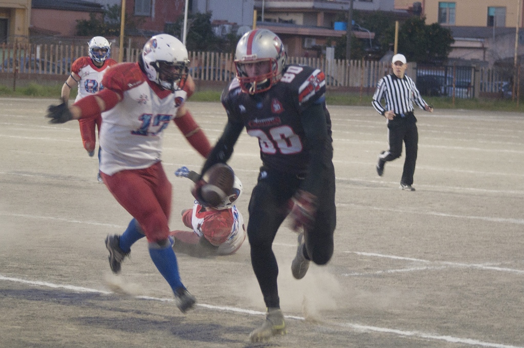 Degno di nota un intercetto di Simone Romellini e l’eleganza con cui Brisu si proietta in end zone avversaria con maestosi giochi di finte eseguiti con progressioni ben ritmate.