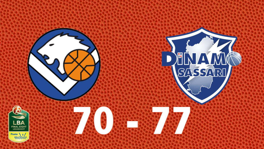 La Dinamo Banco di Sardegna Sassari approda alla finale della Postemobile Final Eight di Coppa Italia, dove domani, alle ore 18:00, incontrerà la EA7 Emporio Armani Milano. “The pink team” arriva all’ultimo atto della competizione in corso di svolgimento al Centro Fieristico di Rimini dopo aver battuto in semifinale la Germani Basket Brescia, con il punteggio di 77-70. Ancora una grande sofferenza, ma ancora una squadra con un enorme carattere e la terza finale di Coppa Italia negli ultimi quattro anni.