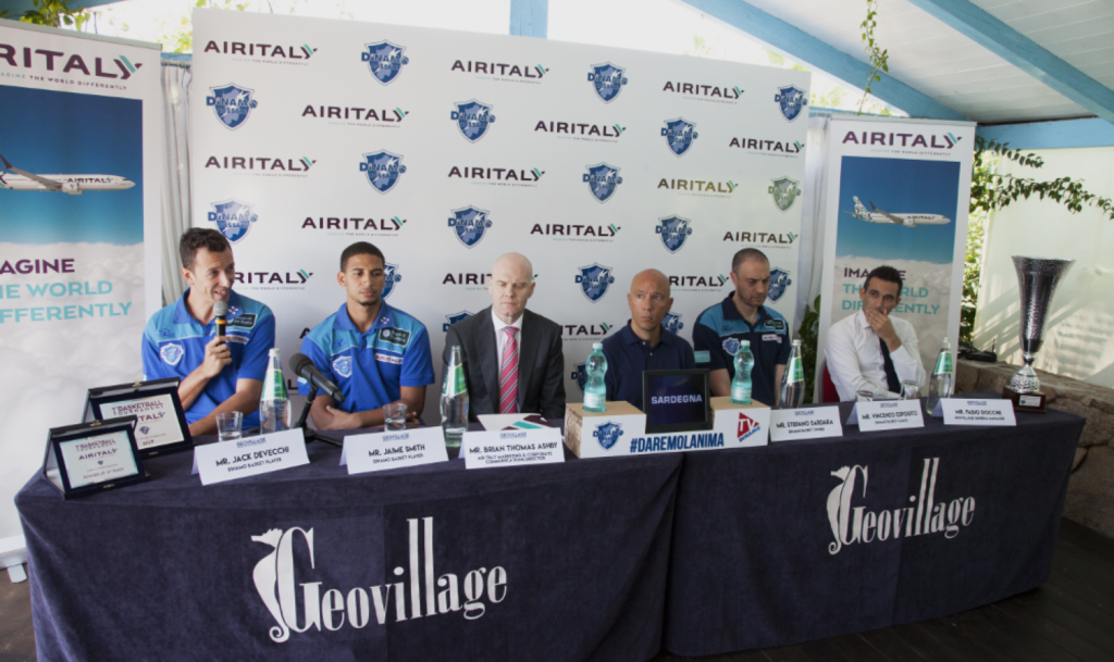 Nel dehors “Il Mirto” del Geovillage, a presentare l’atteso evento sono stati Brian Thomas Ashby, Marketing & Corporate Communications Director di Air Italy, il presidente della Dinamo Stefano Sardara, il coach biancoblu Vincenzo Esposito, il capitano Jack Devecchi, il play-guardia Jaime Smith e il general manager del Geovillage Fabio Docche.