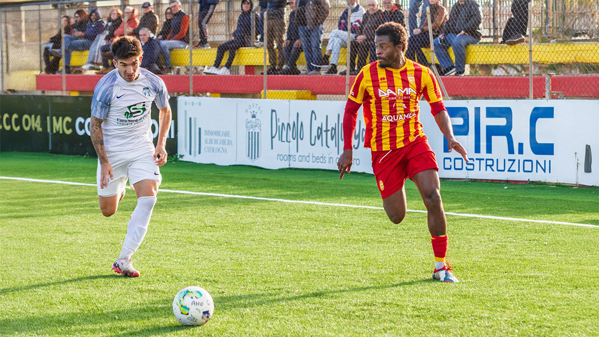 Meglio il primo tempo per la squadra di mister Giandon. Al 10’ ci prova Baraye, ma la sua conclusione è ribattuta da un difensore avversario. È il preludio al gol, che arriva pochi secondi dopo: cross dello stesso Baraye nel cuore dell’area, velo di Spanu e tiro al volo di Scognamillo che vale il vantaggio algherese.