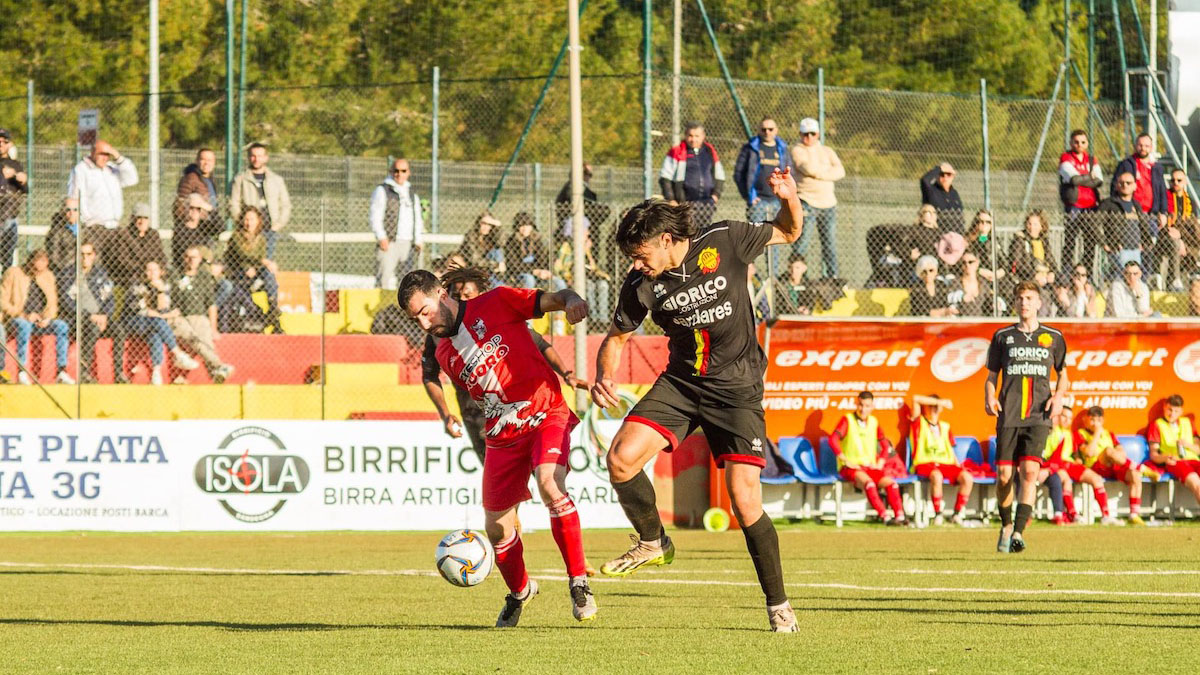 I padroni di casa provano a reagire: al 37’ doppio intervento di Secchi, prima su una punizione di Fini poi su Oggiano. Sul finire del primo tempo pericolosi anche Marco Carboni e Mereu. È il preludio al raddoppio, che arriva nel secondo minuto di recupero con Franchi: spizzata di Baraye per l’attaccante argentino che batte Delogu con una conclusione dal limite.