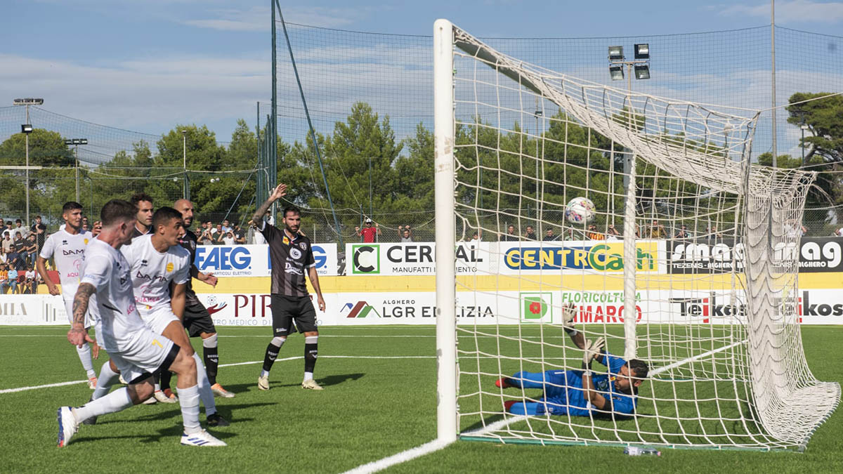 Alghero Calcio, l'azione del gol di Gamarra contro l'Ossese