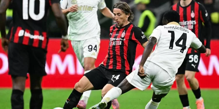 Al 19′ palla respinta lateralmente su situazione da corner dalla difesa del Milan, Bonfanti calcia al volo di prima intenzione e manda di poco alto. Al 23′ Saelemaekers serve Leao dall’interno dell’area, conclusione pericolosa ma che trova la deviazione di Canestrelli e palla in corner. Poco dopo schema da palla inattiva per i padroni di casa con Modric che serve Bartesaghi che calcia di sinistro ma la conclusione è centrale. Risposta di Akinsanmiro con un tiro da fuori area: il suo destro termina alto. Al 32′ Aebischer trattiene Leao e diventa il primo ammonito dell’incontro. Al 40′ opportunità per Fofana, il francese va al tiro dal limite dell’area ma non riesce ad angolare e Semper riesce a bloccare il suo tiro. Al 43′ anche Modric va a calciare dalla distanza ma non colpisce bene col destro e manda alto.