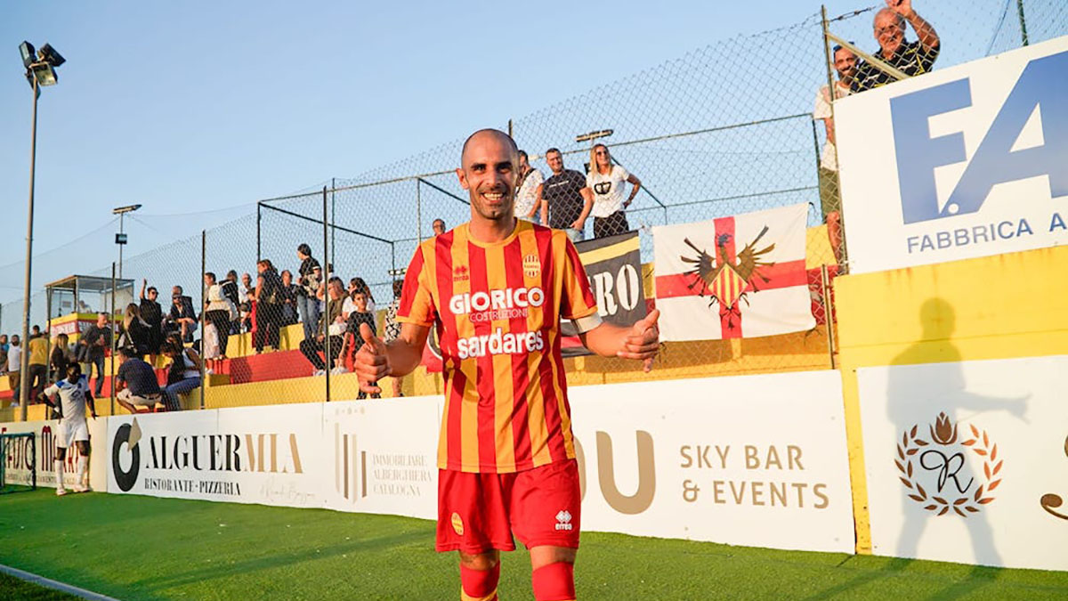 L'esultanza di Stefano Mereu dell'Alghero Calcio
