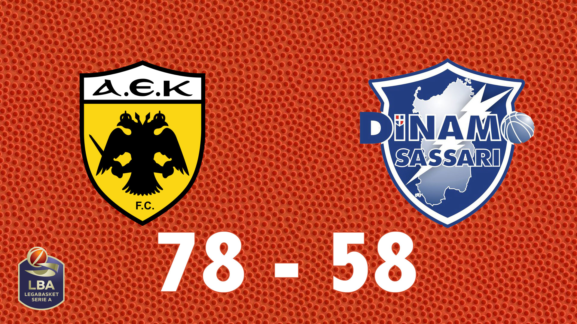 BASKET: AEK ATENE – DINAMO BANCO DI SARDEGNA SASSARI 78-58