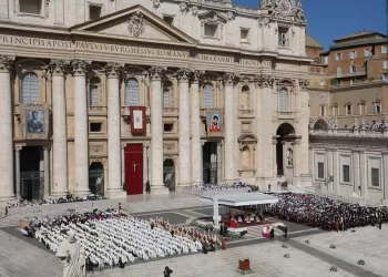 (Adnkronos) - Il cardinale Marcello Semeraro, prefetto del Dicastero per le cause dei santi, nel corso del rito di canonizzazione ...