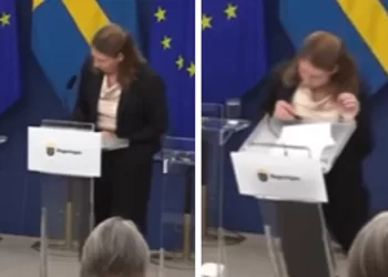 Ministra della Salute svedese Elisabet Lann sviene in conferenza stampa – Il video