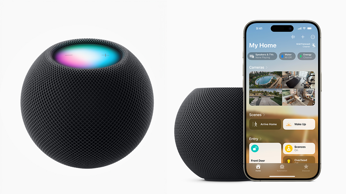Apple amplia la sua gamma di smart speaker HomePod con l’introduzione del nuovo HomePod mini color mezzanotte, realizzato con tessuto a rete riciclato al 100%. Nonostante le sue dimensioni compatte, alto solo 8,43 cm, HomePod mini offre un suono sorprendentemente potente e avvolgente, perfetto per qualsiasi ambiente.