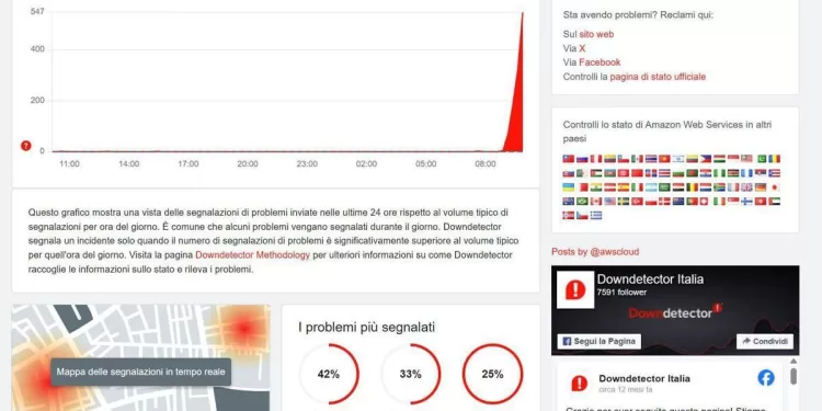 (Adnkronos) – Le prime ore di questo lunedì sono state segnate da un diffuso e grave down che sta interessando una vasta gamma di servizi online a livello globale, con Amazon e la sua unità cloud Amazon Web Services (AWS) al centro dell’emergenza. Le segnalazioni di malfunzionamento, che hanno raggiunto picchi elevatissimi su piattaforme di monitoraggio come Downdetector, riguardano sia i servizi di e-commerce di Amazon sia, in modo cruciale, le infrastrutture cloud essenziali.