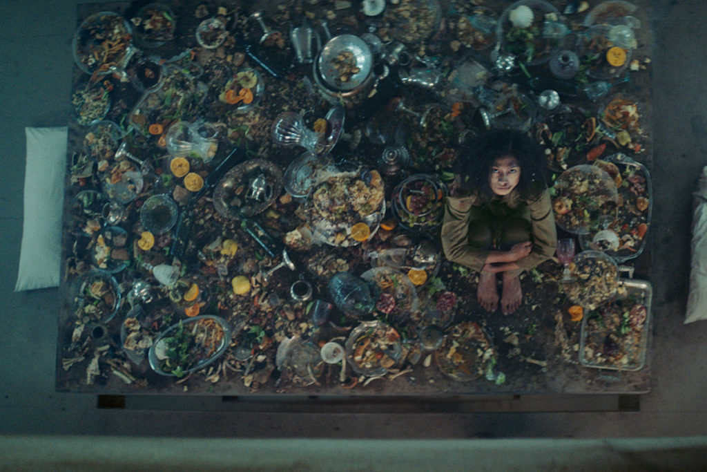 La fossa è il nostro mondo, liberato dagli orpelli e dai freni inibitori che normalmente ci circondano. La lealtà verso il prossimo, il rispetto, la solidarietà, l’empatia: tutto passa in secondo piano. Si svela la natura umana più recondita, vengono alla luce i sentimenti meno puri. La metafora del cibo scelta è riuscitissima. Il cibo rappresenta la ricchezza, le opportunità, gli strumenti che non sono concessi a tutti in egual misura. Una parte del mondo si deve sacrificare per permettere all’altra metà di goderne appieno. Ci sono i ricchi e ci sono i poveri. E chi è stato da una delle parti e poi si ritrova dall’altra pare dimenticare qualsiasi lezione ci fosse da imparare, perché l’egoismo dell’uomo, allo stato primordiale del suo essere, è la forza più dirompente che esista. È la società odierna, quella che viene raccontata. Evidente è la critica al sistema capitalista: c’è chi produce e chi è non è necessario al processo. Chi produce e chi consuma. Una speranza è offerta da chi, nonostante la situazione tenda a placare ogni ragionamento evoluto, non accetta l’immobilismo di ciò che sembra immutabile, e decide di abbandonare il proprio sicuro metro quadro – condizione intermedia – per arrivare sino al punto zero. Una discesa verso gli inferi, partendo dal Paradiso. È proprio dagli inferi che può partire il messaggio rivoluzionario necessario. Ma non è con i discorsi sensati che ci si riuscirà. La resistenza alle brutture del mondo sotterraneo (ma neanche tanto diverso da quello terrestre) richiederà mezzi ben meno filosofici. Per quale motivo? «Perché la merda è più efficace della solidarietà spontanea.»
